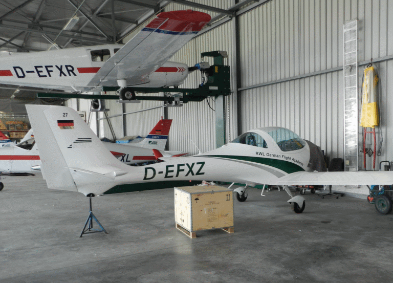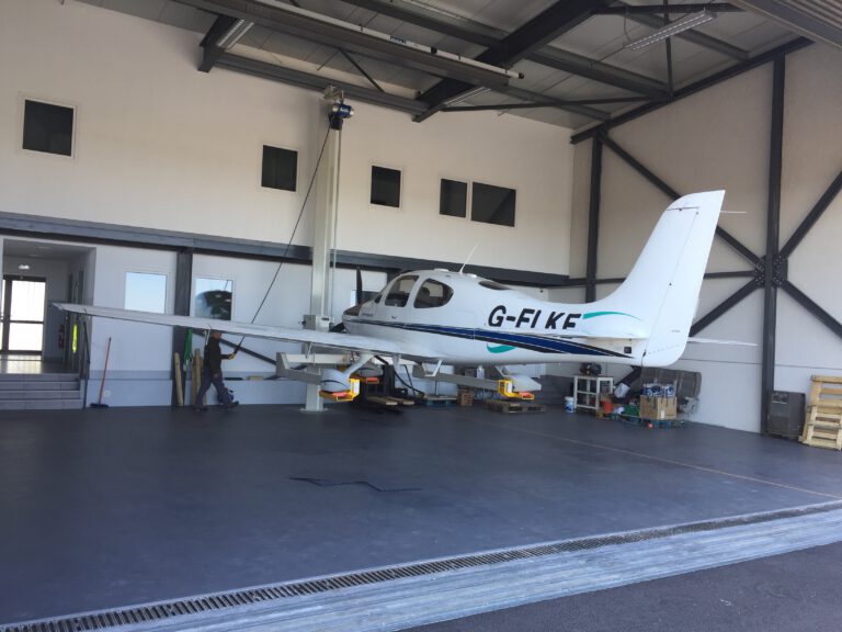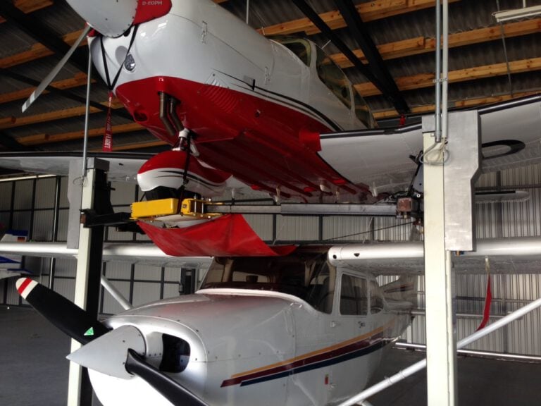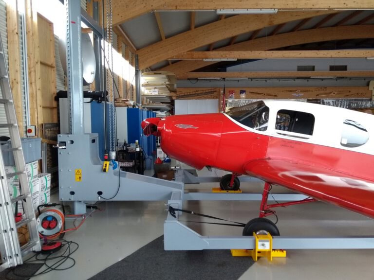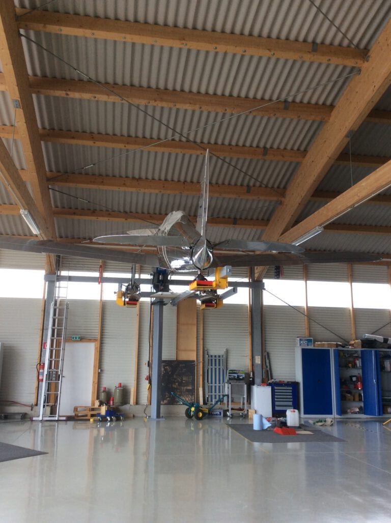 The Hangar lift is a storage device and not an official maintenance lift; however, many customers can finally clean the underside of their aircraft without lying on the ground and perform work on their aircraft more comfortably.